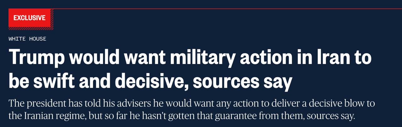 По их данным, Трамп заявил своей команде по национальной безопасности, что не желает спровоцировать затяжную войну на недели или месяцы.
