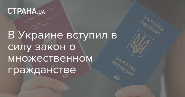 Сегодня в Украине вступил в силу закон 4502-IX о множественном гражданстве.