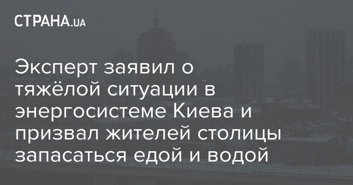Эксперт заявил о тяжёлой ситуации в энергосистеме Киева и призвал жителей столицы запасаться едой и водой