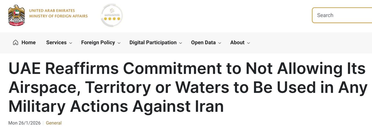 Объединённые Арабские Эмираты заявили о "недопустимости использования своего воздушного пространства, территории или водных ресурсов для любых военных действий против Ирана".