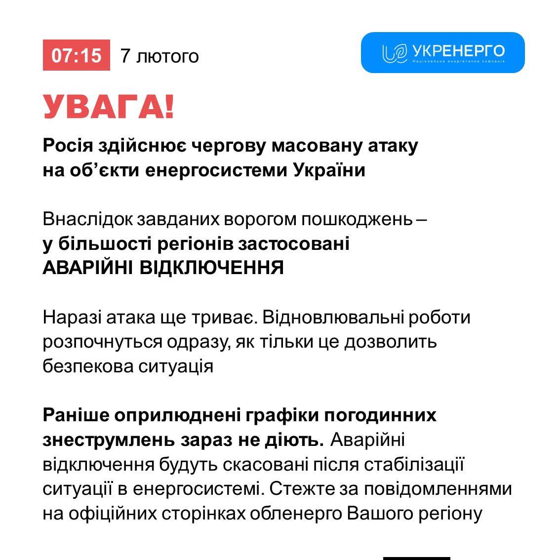 10:40 Сегодня ночью и утром были удары по энергетическим объектам в восьми областях, сообщает "Укрэнерго".