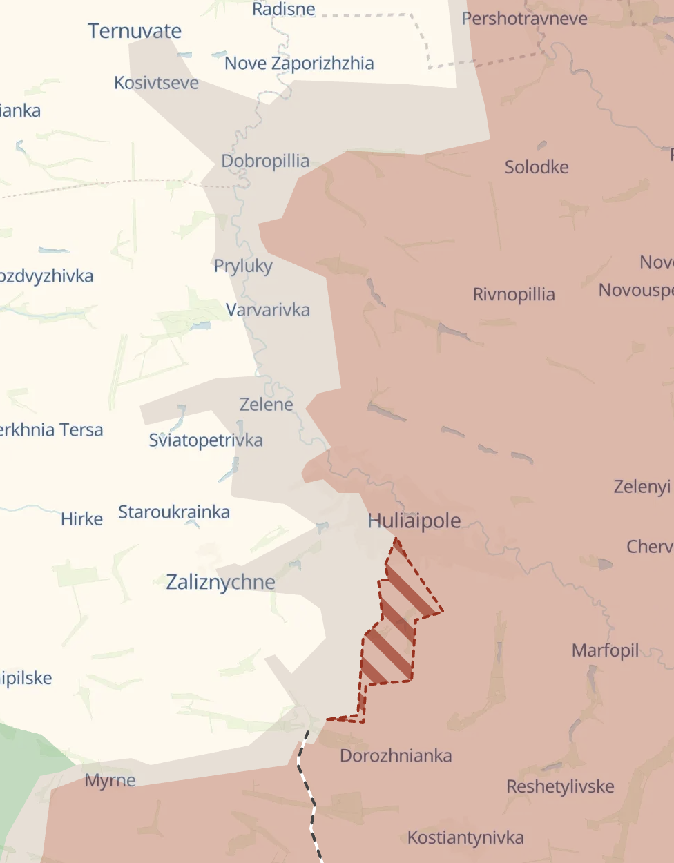 Также россияне масштабно продвинулись к югу от Гуляйполя, сообщает Deep State. При этом минобороны РФ заявляет, что захвачено находящееся западнее село Зализничное.