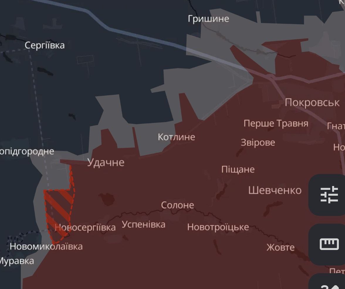 18:06 Российские войска продвинулись к западу от Покровска, в районе Удачного и Новониколаевки.