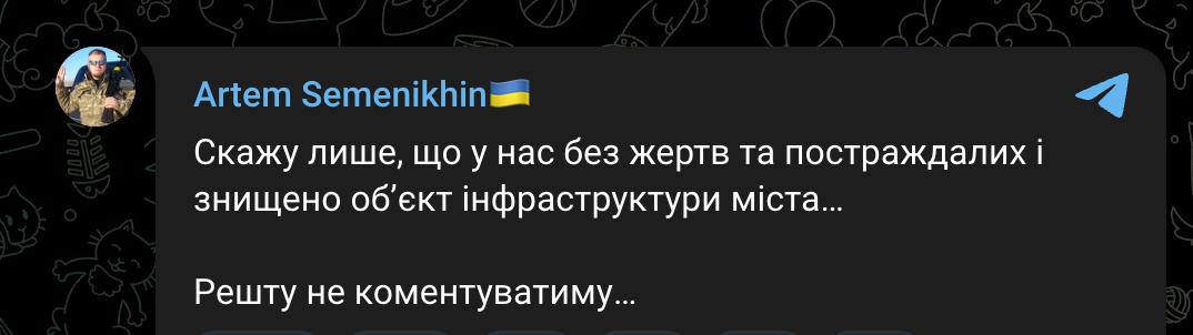 Параллельно Сумская ОВА заявила об ударе по медицинскому учреждению в Конотопе.