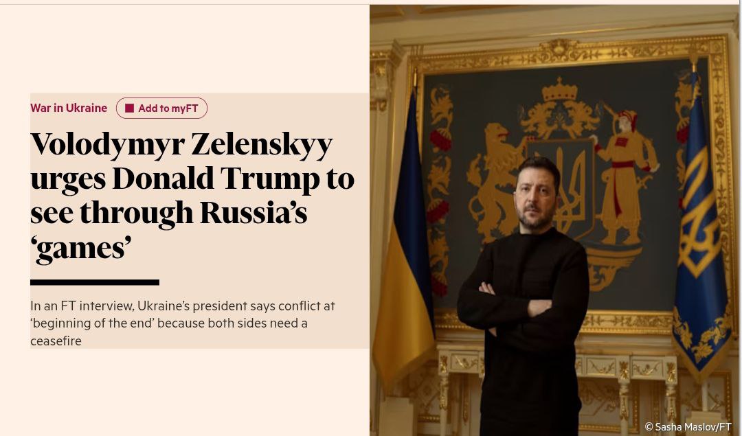 8.26 Украинский президент заявил, что Россия и Украина находятся в "начале конца" войны, пишет Financial Times.