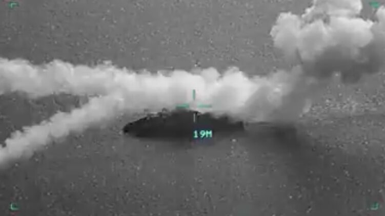 Кадры удара по иранскому военному кораблю класса "Сулеймани".