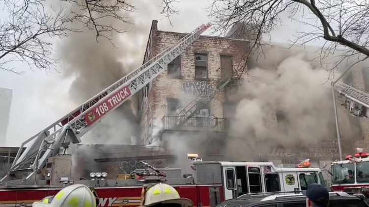 У Брукліні горить склад пиломатеріалів. Скріншот із відео