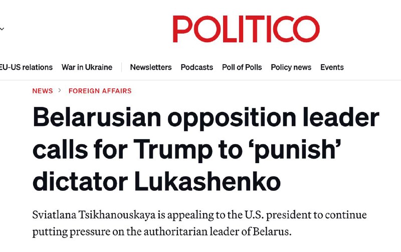 Білоруська опозиціонерка Світлана Тихановська закликала главу Білого дому Дональда Трампа не відновлювати стосунки з білоруським президентом Олександром Лукашенком, який нещодавно звільнив її дружину Сергія, вважає, що Лукашенку слід покарати.