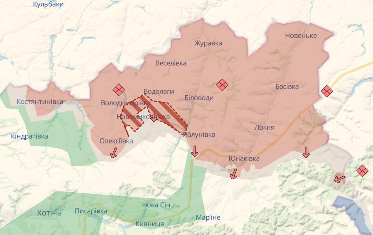 Армія РФ після тривалої паузи відновила наступ у Сумській області та суттєво просунулась у районі Новомиколаївки, повідомляє український військовий паблік Deep State.