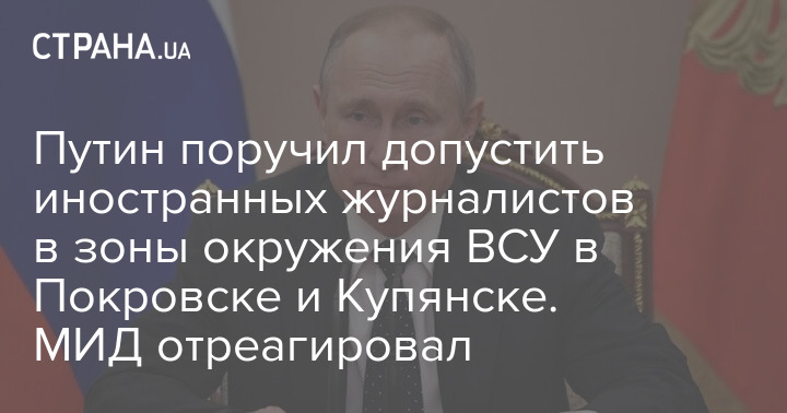 Путін доручив допустити іноземних журналістів до зон оточення ЗСУ у Покровську та Куп'янську. МЗС відреагувало