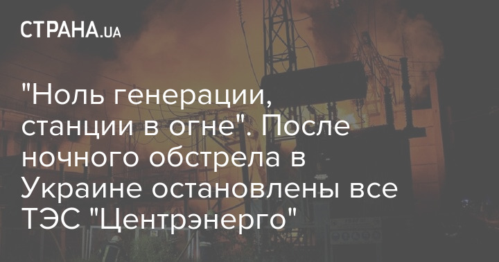 "Нуль генерації, станції у вогні". Після нічного обстрілу в Україні зупинено всі ТЕС "Центренерго"