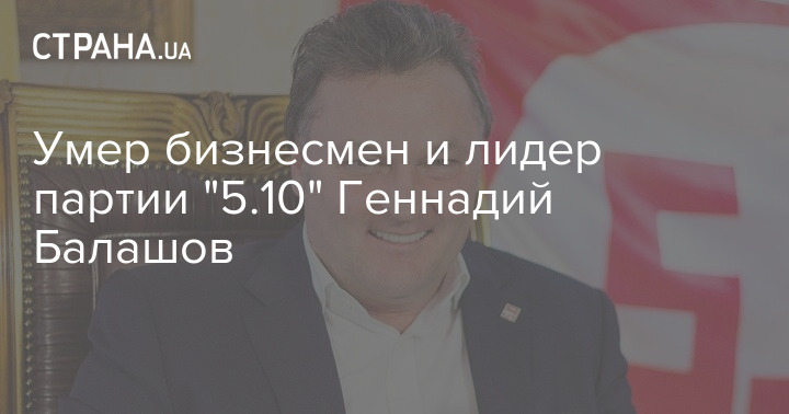 Помер колишній народний депутат та лідер політичної партії "5.10" Геннадій Балашов. Йому було 64 роки.