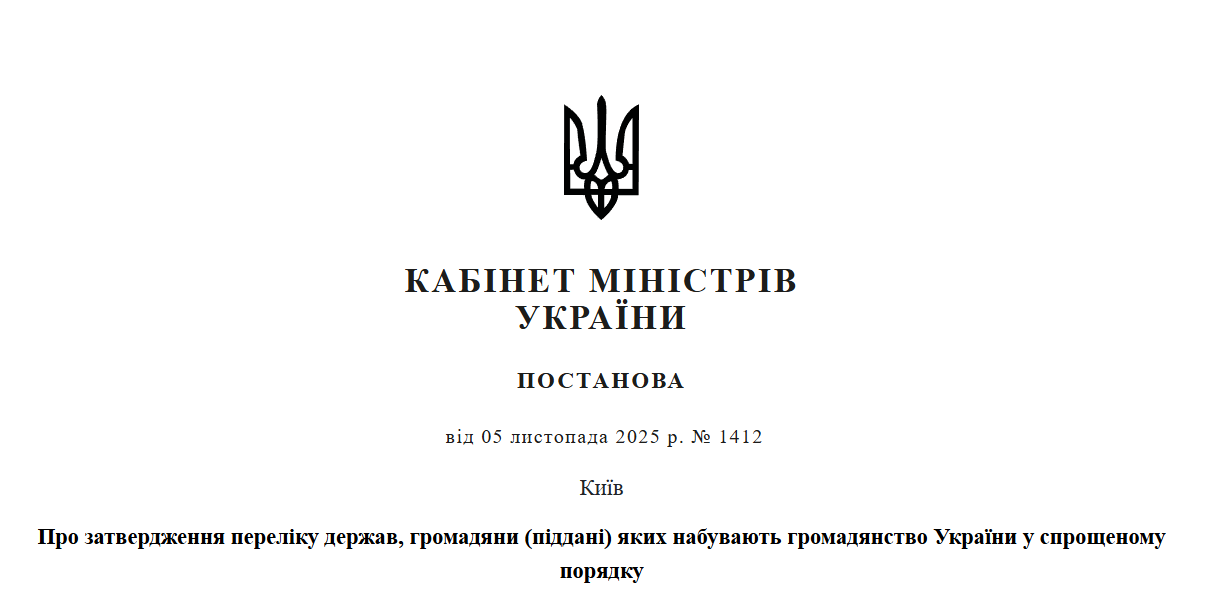 З документа випливає, що за спрощеною схемою отримати українське громадянство зможуть громадяни США, Канади, Німеччини, Польщі та Чехії.