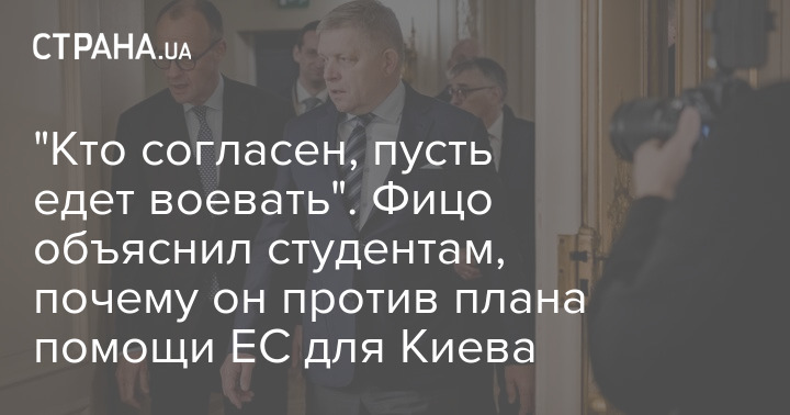 "Хто згоден, нехай їде воювати". Фіцо пояснив студентам, чому він проти плану допомоги ЄС для Києва