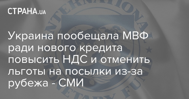 Україна пообіцяла МВФ заради нового кредиту підвищити ПДВ та скасувати пільги на посилки з-за кордону - ЗМІ