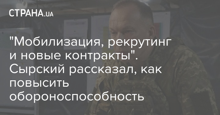 "Мобілізація, рекрутинг та нові контракти". Сирський розповів, як підвищити обороноздатність