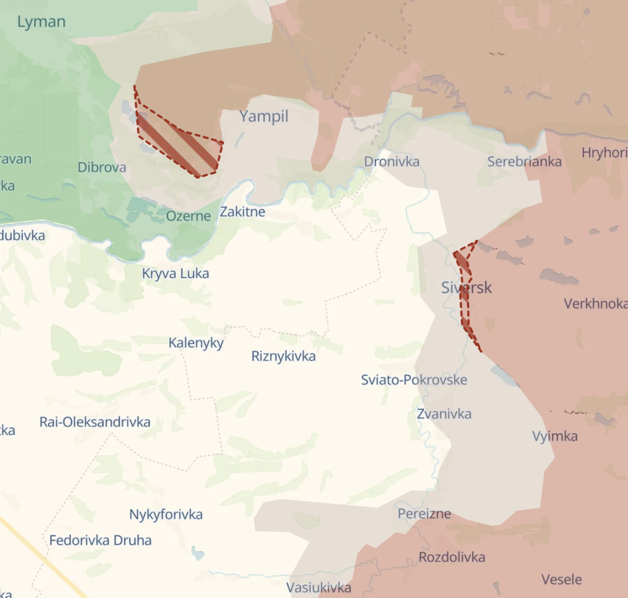 Просування фіксує український паблік Deep State, який зазначає, що росіяни зайняли нові позиції як у Сіверську, так і в сусідньому Ямполі під Лиманом.