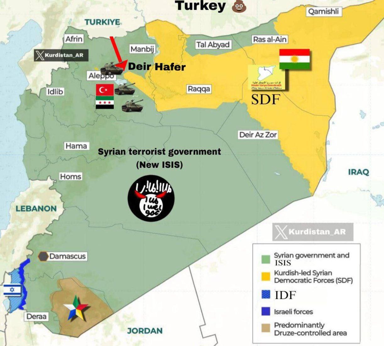Крім того, сирійська армія оголосила військовою зоною території на захід від Євфрату, включаючи райони Дейр-Хафір і Мескене, і вимагала виведення всіх збройних формувань курдів на схід від річки.