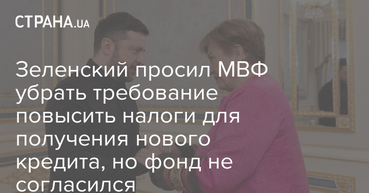 У Києві пройшли переговори президента України Володимира Зеленського та головою МВФ Кристаліни Георгієвої. На них фонд продовжив наполягати на підвищенні податків як попередньої умови надання нового кредиту, хоча президент і намагався переконати Георгієву зняти цю вимогу.