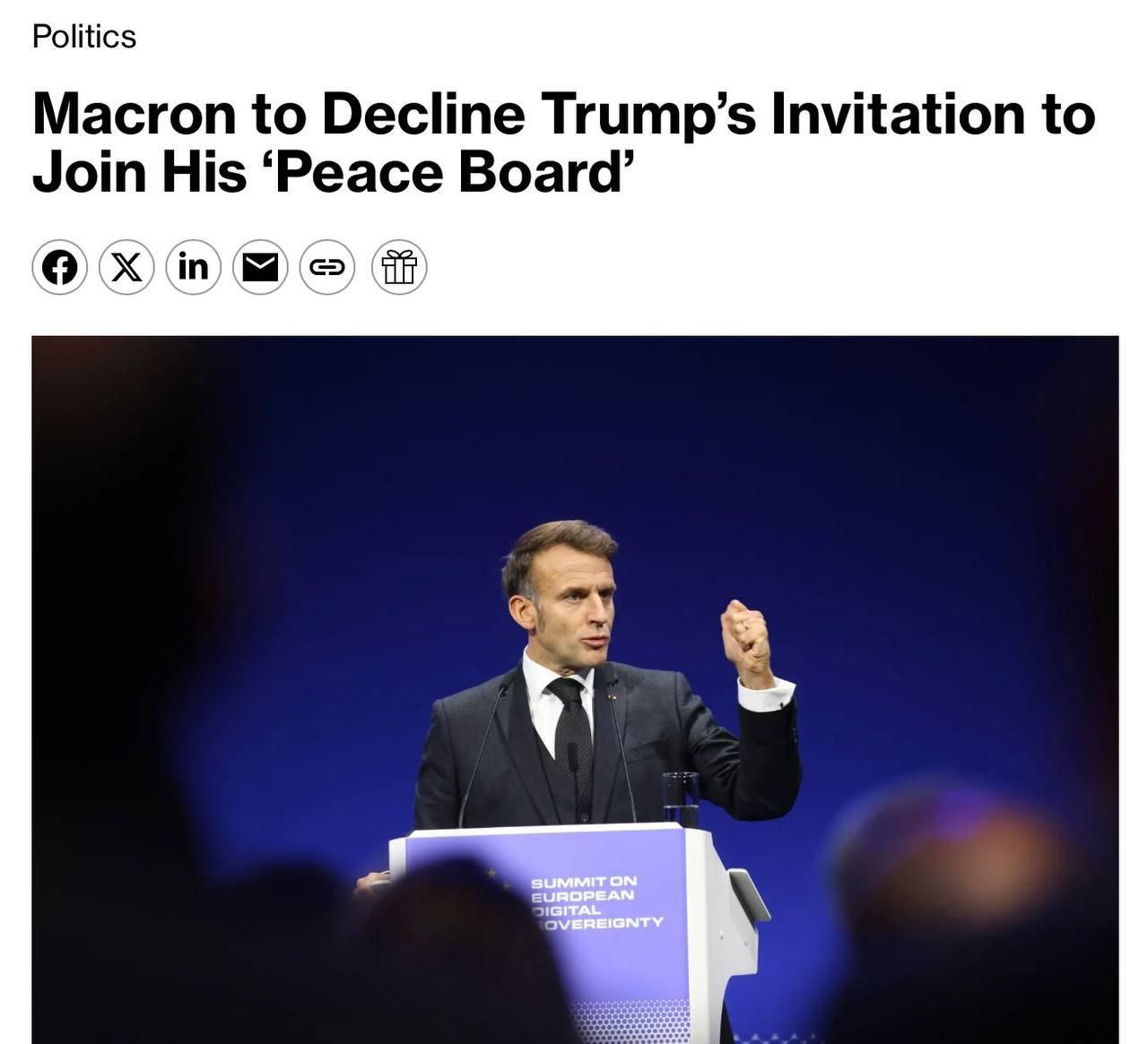 Макрон відмовиться від пропозиції Трампа увійти до Ради світу - Bloomberg