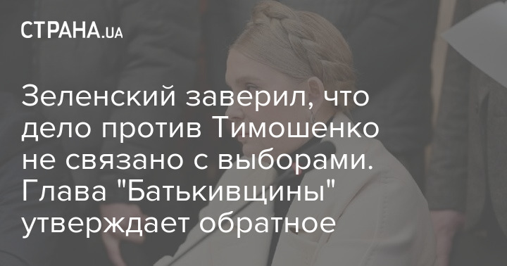 Зеленський запевнив, що справа проти Тимошенко не пов'язана із виборами. Глава "Батьківщини" затверджує протилежне