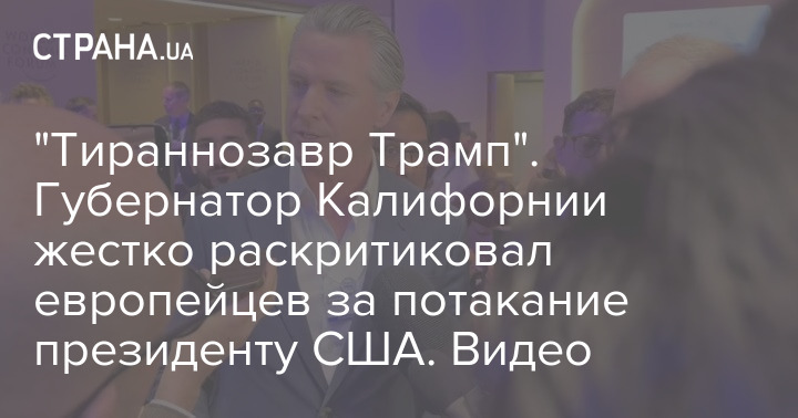 Губернатор Каліфорнії Гевін Ньюсом жорстко розкритикував європейців за "потурання" президенту США, назвав їх "жалюгідними", і закликав активніше чинити опір "тиранозавру" Дональду Трампу.