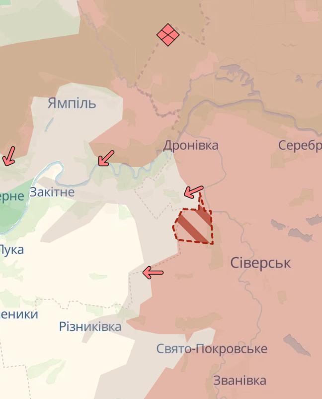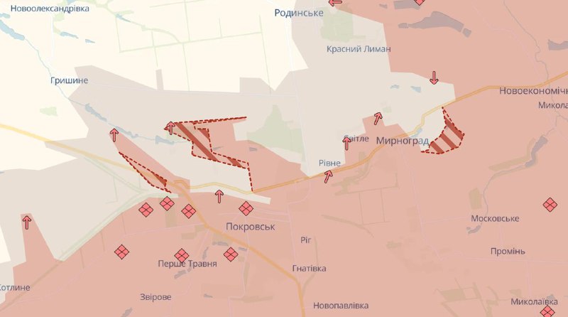 13.04 Армія РФ знову просунулась у Покровську, а також сусідньому Мирнограді та біля Сіверська, повідомляє Deep State.