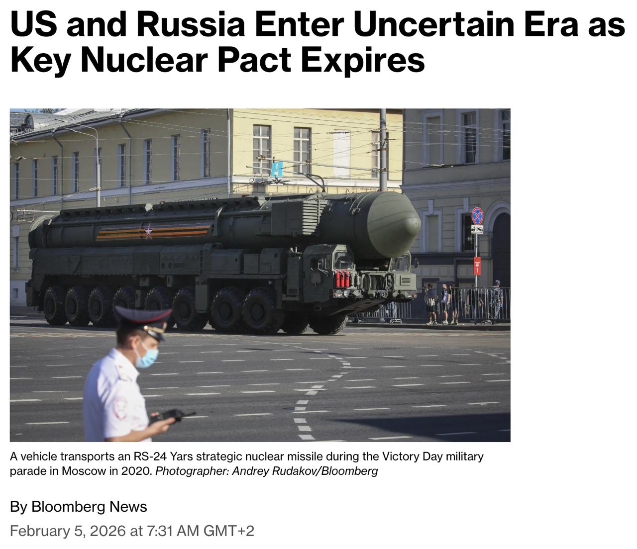 Закінчення терміну договору СНО-3 загрожує новою гонкою ядерних озброєнь - Bloomberg