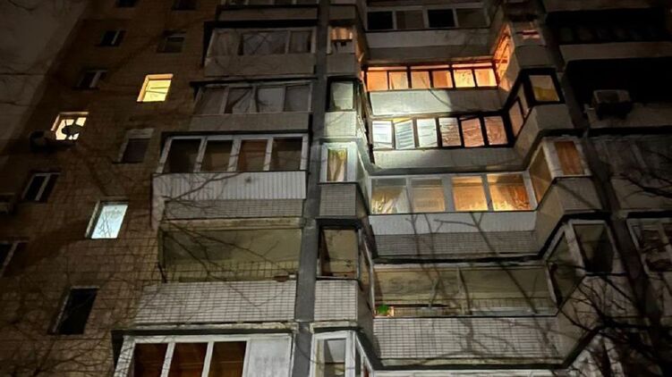 У Дніпровському районі постраждав фасад 9-поверхового житлового будинку та припарковані автомобілі.