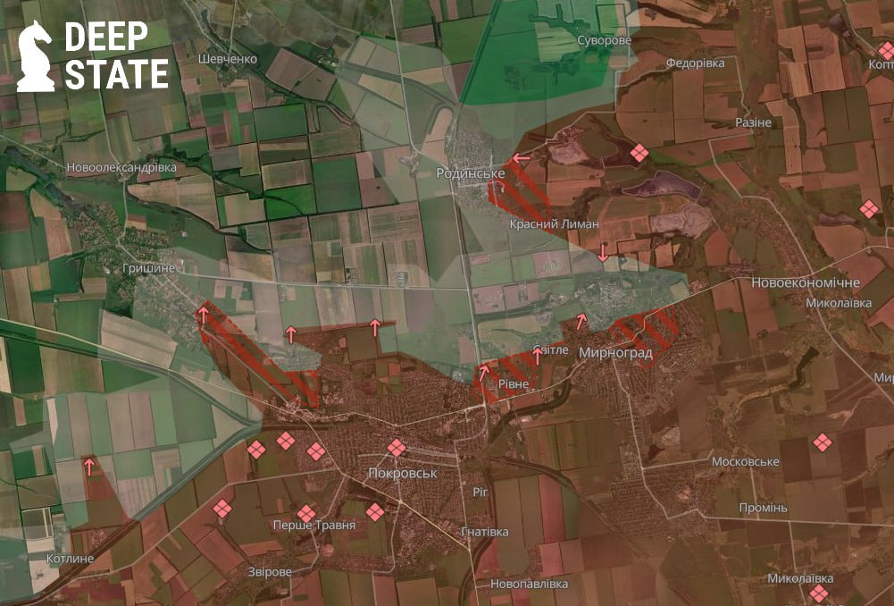 12.23 Армія РФ просунулась у Покровську, Мирнограді та околицях, повідомляє Deep State.