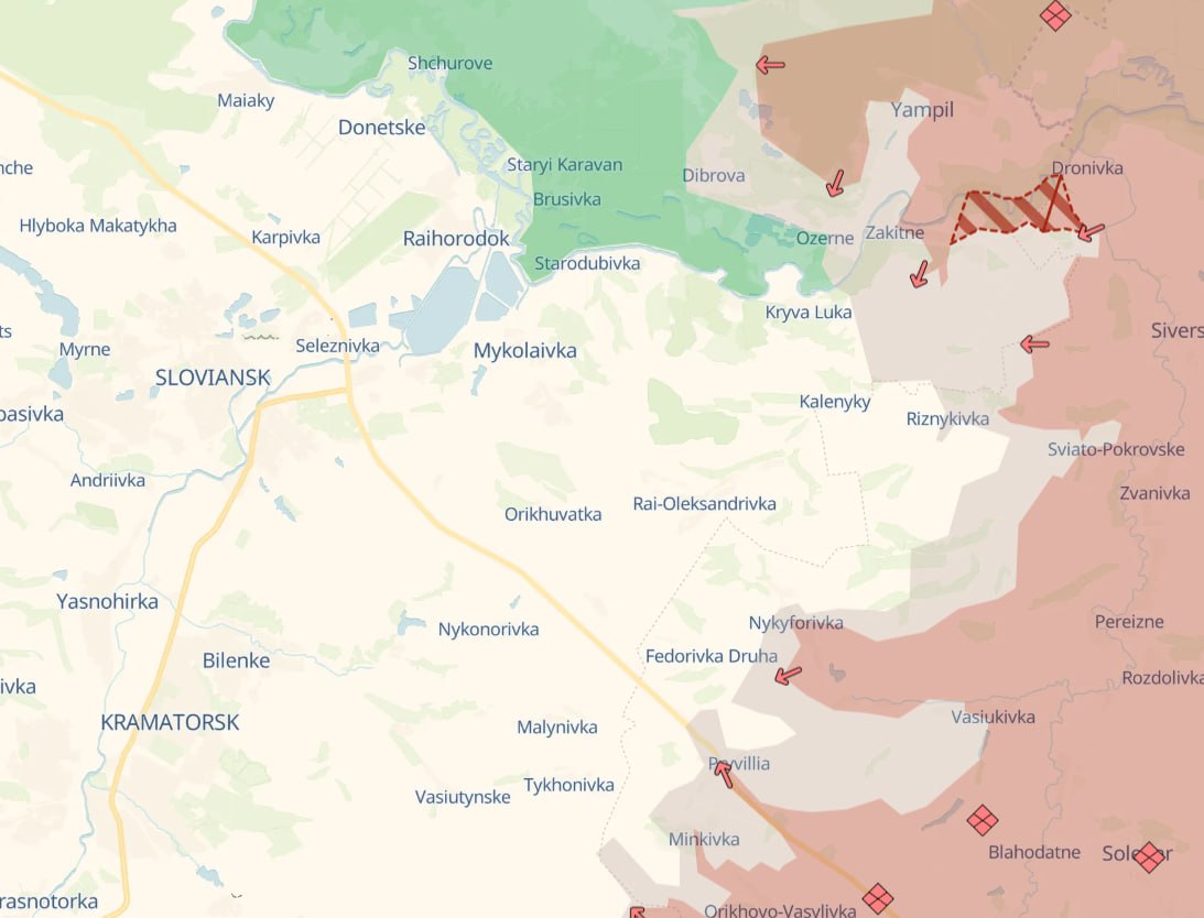 23.03 Армія РФ просунулась у районі Платонівки на слов'янсько-краматорському напрямку, повідомляє Deep State.