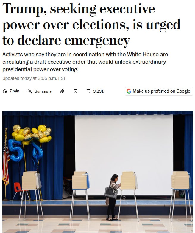 Прихильники Трампа закликають президента США оголосити надзвичайний стан перед осінніми парламентськими виборами, що дозволить заборонити голосування поштою та через виборчі машини, повідомляє The Washington Post.