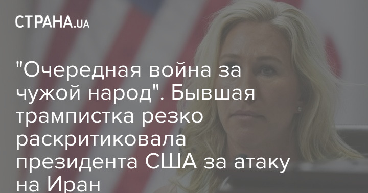 Колишня трампістка та екс-конгресвумен Марджорі Тейлор-Грін, яку Дональд Трамп минулого року оголосив зрадницею та ганьбою республіканців, різко розкритикувала президента США за атаку на Іран.