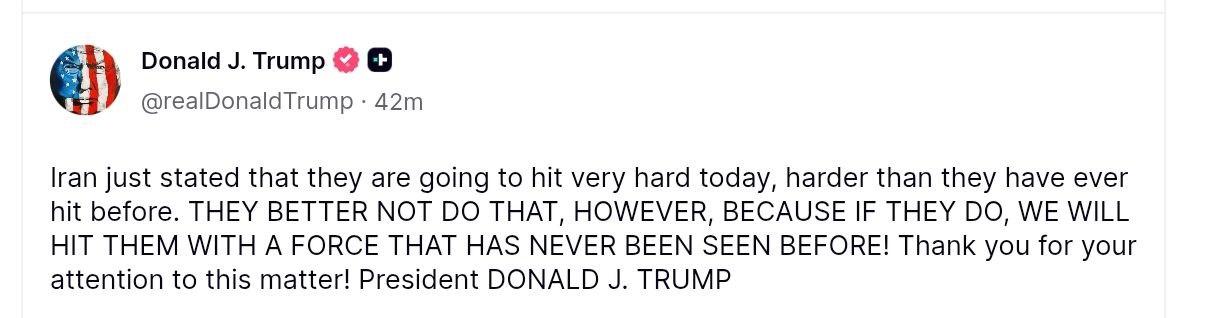 "Їм краще цього не робити, тому що якщо вони це зроблять, ми відповімо силою, яку ще світ не бачив", - написав Трамп.