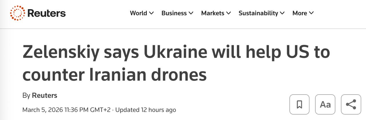 "Отримали запит Сполучених Штатів на конкретну підтримку у захисті від "Шахедів" у регіоні Близького Сходу. Доручив надати необхідні кошти та забезпечити присутність українських фахівців, які можуть забезпечити необхідну безпеку. Україна допомагає партнерам, які допомагають нашій безпеці, захисту життів наших людей", - написав учора президент у своєму телеграмі.